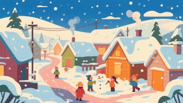 插画风雪人捧着饺子,拟人化设计充满可爱感与温馨感,水彩质感渲染梦幻冬日场景,暖色系烘托节日氛围。