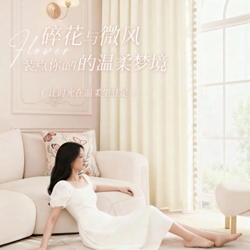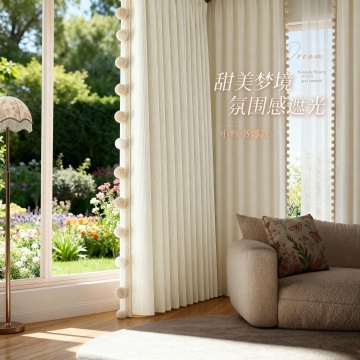 去掉窗帘下方的毛绒小球,保留窗帘侧边的小球,每条窗帘只有一个侧边有小球