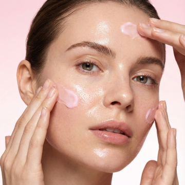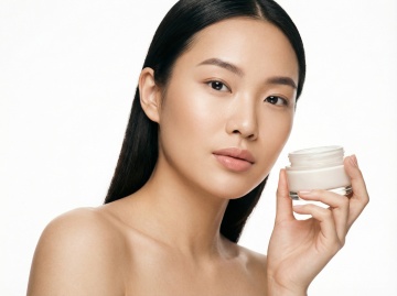 柔和光影下的极简美学,清透肌肤与玻璃质感瓶身呼应,性冷淡风中透出轻拟物的舒适感,实景感十足的简约主义护肤画面。