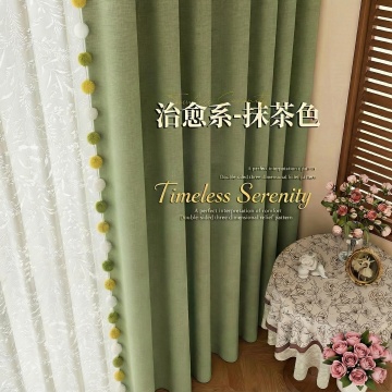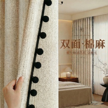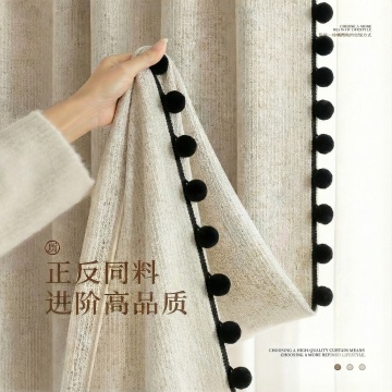 参考图二图三的款式,把同款的黑边小绒球放在图一的窗帘上,其他地方不变,比例一比一