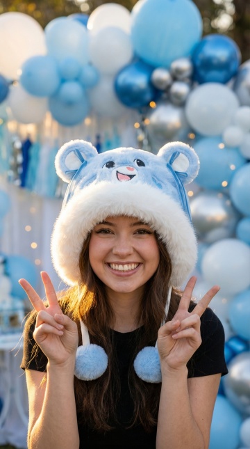 利用这张图片的帽子帮我生成一些模特摆拍图,可以参考抖音网红拍照