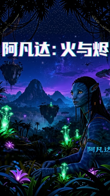 梦幻感与未来感交织,3D风呈现虚拟自然奇观,霓虹灯风与粒子风营造神秘光影,科技感十足的潘多拉星球夜景,展现阿凡达世界的极致视觉震撼。