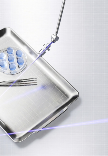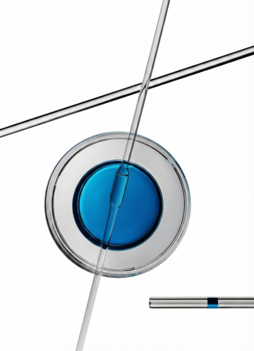 透明玻璃质感的细胞悬浮在柔和的蓝白色光晕背景中,中央细胞内部包含精致的分子结构模型,周围环绕着多个大小不一的透明气泡,一支玻璃滴管正将一滴液体滴向中央细胞,整体呈现出高度写实的3D渲染效果,光影层次丰富,高光与阴影过渡自然,营造出纯净、科技感与精密科学的氛围,画面具有清晰的视觉焦点和梦幻般的透明质感。