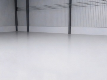 超写实风格的现代实验室内部场景,整体以纯净的白色和浅灰色为主色调,光线明亮均匀,天花板上排列整齐的长条形LED灯带与白色方形天花板面板形成规则的几何图案,地面为光滑的白色环氧地坪,反射出天花板和设备的清晰倒影。实验室中央是宽敞的通道,两侧是白色的实验台和储物柜,实验台上摆放着现代化的白色实验仪器和透明玻璃器皿,后方靠墙的白色金属架子上整齐排列着实验用品,远处有明亮的大窗户透进自然光,整个空间呈现出极度干净、规整、有序的氛围,线条简洁流畅,没有任何杂乱元素,适合作为背景使用,营造出专业、科技、无菌的感觉。
