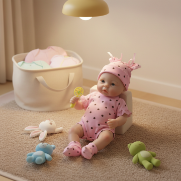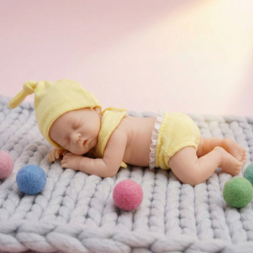 毛线编织的萌鹿,软3D质感搭配微缩艺术场景,梦幻雪景中点缀水晶与小树,充满可爱、温馨的节日氛围。
