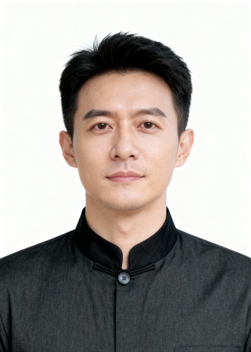 一位年轻亚洲男性,身着剪裁合体的黑色西装,内搭白色衬衫,系着黑色领带,左手自然插在西装裤口袋,右手轻握西装前襟,面带温和微笑,姿态自信挺拔,背景为纯白色,整体呈现清晰、专业、正式的商业人像摄影风格,光线均匀柔和,突出西装的挺括质感与人物的精神面貌。