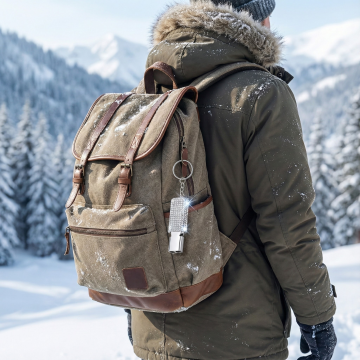 简约主义风格,柔和色调背包置于温暖阳光下,营造舒适感与宁静氛围。