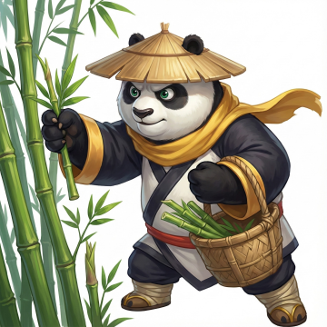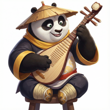 结合弹琴、泡茶等道具再生成十个不同熊猫形象