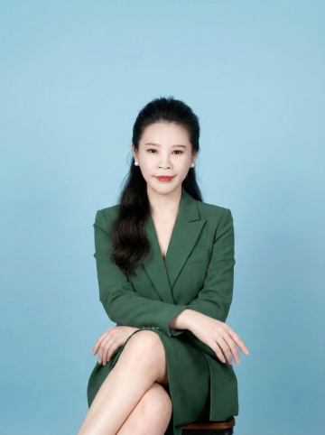 保留人物脸型、发型、年龄特征生成标准职场形象照,50MM焦段,F/4光圈(F/2.8-F/4区间),相机与人物距离3米,横向16:9比例(左右预留环境空间),人物占画面60%,入镜头部至膝盖上方5CM,平视视角,人物居中构图,头肩比例协调,身穿深墨蓝色西装,内搭白色衬衫,精致且高级的深蓝色斜向微微渐隐光泽感极细条纹商务感领带,下装黑色西裤搭配黑色皮带;正面抱胸姿态,肢体舒展的站立姿态,自信从容;主