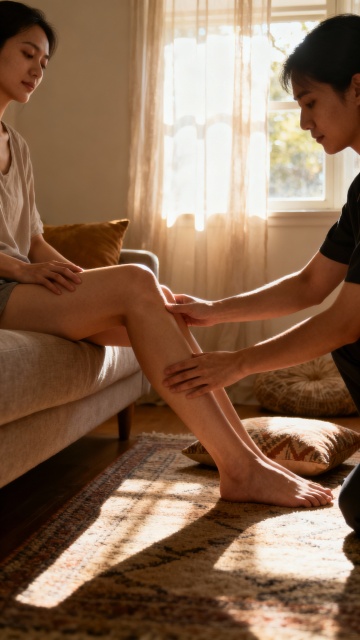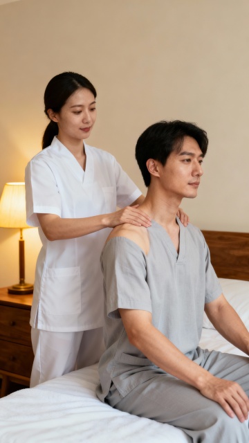 轻拟物风融合油画质感,柔和光影勾勒温馨按摩场景,实景感十足,传递舒适疗愈氛围。