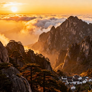 生成4张以上与安徽家乡主题相关的宣传图片(如风景、人文、未来想象图等)。每张图片需注明生成所用的提示词,并附简短设计说明