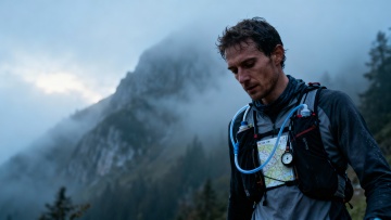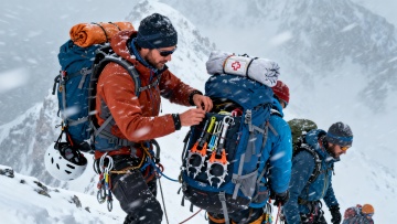 保持手套细节不变,分清正反面,一个外国帅哥穿着这双手套在登山