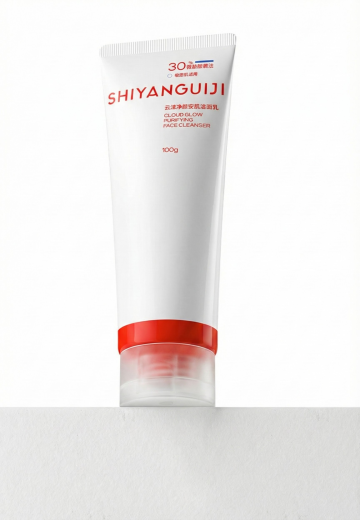 3D轻拟物风格,简约主义设计,清透泡沫粒子环绕洁面乳,营造清新柔和的视觉感受,传递清爽舒适的护肤体验。