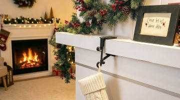 暖光烛火映衬雪覆松枝,微缩圣诞树与松果静置木台,油画质感融汇浮雕层次,重拟物风呈现温馨舒适实景,营造冬夜沉浸式节日氛围。
