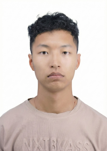 参考图一生成画面:证件照标准样式;保留人物发型和脸型特征,不美颜,外穿奶白米色学院风针织背心,内搭白色翻领长袖衬衫,背心领口有深蓝色、白色和浅灰色条纹装饰;领口处搭配深色格纹领带,淡妆,发丝柔顺有光泽;居中平视正面视角,纯正面,胸部以上半身像;去除一切饰品;光线均匀柔和,画质清晰,表情自然,头部完整,去除人物之外的所有元素,简约白色背景;参考图二的人物占位和比例,严格按照图一的内容生成。