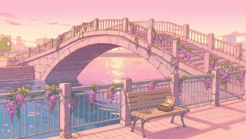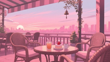 二次元日漫,城市海边,晚霞,约会,氛围浪漫、回忆,浅粉色,细节丰富,构图夸张,不要人物,16:9,生成二张