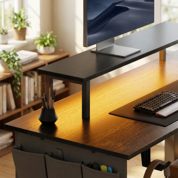 不改变桌子和摆放角度,生成虚化的家庭办公背景