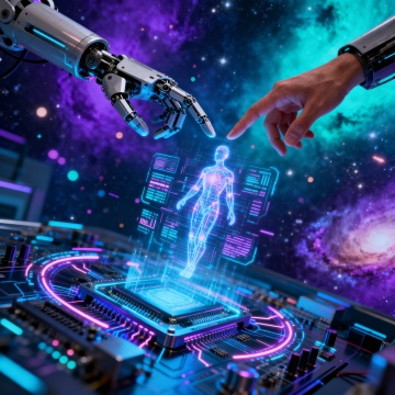 全景构图,极简风格的量子生物实验室内部,6米高的纳米自洁玻璃幕墙让晨光均匀漫射,360°环绕式无影灯带在悬浮式天花板上形成精密的几何光网。中央悬浮着由超导磁悬浮技术支撑的环形实验台,台面采用航空级白色陶瓷复合材料,边缘嵌入冷光蓝色状态指示灯。地面是无缝拼接的超白玻璃,倒映着天花板的光影矩阵与墙面模块化生物培养舱的蓝色数据流。左侧墙面上嵌入式智能试剂架自动分类排列着带荧光标识的纳米试管,右侧半透明亚克力隔断后可见带全息投影界面的基因测序仪,所有设备线条呈现精确的135°倒角处理。空气中悬浮着0.1微米级的净化气泡,整体色调由92%的超白与8%的科技蓝构成,营造出零重力感的绝对洁净科研空间。