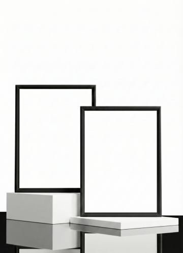 一张略微倾斜放置的拍立得照片,白色背景,照片主体为纯白色边框,边框内是纯黑色的矩形区域,整体呈现简洁、现代的设计感,画面干净利落,没有任何文字、图案或装饰元素,光影均匀,边缘清晰,具有清晰的视觉层次结构,信息传达直接高效。