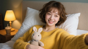 根据下列十条不同的描述词帮我生成十个不同风格长相的美女图,4k,佳能拍摄:、 床头慵懒甜妹自拍(18-22 岁) 1. 18 岁,圆脸带婴儿肥,杏眼弯成月牙,鼻尖粉粉的,唇珠饱满涂着草莓色唇釉,黑色双马尾松松垮垮,碎发贴在脸颊,穿白色小熊印花睡衣,趴在床头举着手机自拍,枕头是粉色格子的,阳光透过窗帘缝隙洒在脸上,脸颊透着自然腮红,手指无意识揪着睡衣领口,画面带一点点手机边框,高清人像质感 2. 19 岁,鹅蛋脸,下垂小鹿眼带卧蚕,小巧鼻,嘟嘟唇,浅棕色羊毛卷短发乱糟糟顶在头上,穿黄色软糯针织衫,靠在床头靠背垫上自拍,怀里抱着兔子玩偶,玩偶耳朵蹭着脸颊,床头摆着奶茶杯,暖黄色台灯打光,皮肤有细腻绒毛感,笑容甜到眯眼,抓拍感十足 3. 20 岁,心形脸,桃花眼笑出梨涡,圆润鼻头,蜜桃色唇,黑色长直发发尾微卷,穿浅蓝色碎花吊带裙,跪坐在床上自拍,身后是挂满毛绒挂件的床头帘,手机举到侧脸,歪头比了个小爱心,清晨自然光柔和,发丝泛着柔光,皮肤透着健康的粉,胶片颗粒感 4. 21 岁,菱形脸但线条柔和,细长眼眼尾微微上挑,高鼻梁,清冷中带甜的唇色,银灰色短发狼尾有点炸毛,穿灰色 oversize 卫衣,卫衣袖子太长盖住手背,坐在床头地毯上自拍,膝盖上放着漫画书,窗外是阴天,柔光打在脸上,手指比耶贴在脸颊,笑容腼腆不刻意 5. 22 岁,长脸,圆眼双眼皮褶皱浅,蒜头鼻,饱满唇,棕色锁骨发有点油塌,穿粉色泡泡袖衬衫,趴在床上侧着身子自拍,手机放在枕头边,脸颊贴着手背,身后是堆满玩偶的床,阳光洒在发顶,皮肤有自然的纹理,甜妹氛围感拉满 二、 化妆台元气自拍(20-25 岁) 6. 20 岁,圆脸,圆眼亮晶晶,宽鼻梁,嘟嘟唇,黑色高马尾绑得太紧勒出红印,穿白色吊带,站在化妆台前对着镜子自拍,镜子边缘摆着口红和眼影盘,手里拿着刚打开的气垫,脸上还带着未晕开的腮红,暖白光打在脸上,皮肤透着光泽,笑容元气满满 7. 21 岁,鹅蛋脸,杏仁眼含着笑意,小翘鼻,豆沙色唇,深棕色大波浪卷发披在肩上,穿米色针织开衫,坐在化妆椅上自拍,镜子里映出身后的衣柜,手里举着一支口红对着镜头,嘴角沾了一点点口红印,化妆台灯圈打光,眼神温柔又甜 8. 22 岁,心形脸,狐狸眼但眼神软糯,高鼻梁,橘色系唇妆,浅棕色短发法式刘海,穿黄色碎花连衣裙,站在化妆台边自拍,镜子上贴着可爱贴纸,手里拿着发箍卡在头顶,头发有点凌乱,阳光从窗户照进来,皮肤有轻微泛红,甜酷少女感 9. 23 岁,方脸下颌线柔和,下垂眼无辜感,圆润鼻头,水润唇,黑色齐肩短发外翻,穿酒红色短袖 T 恤,对着化妆镜自拍,镜子里能看到刚画了一半的眼线,手里握着眼线笔,脸上带着俏皮的笑容,暖黄色灯光,真实生活化抓拍 10. 24 岁,钝角瓜子脸,细长内双眼,小翘鼻,浅橘色唇,棕色高马尾发丝蓬松,穿白色运动背心,在化妆台前自拍,脸上敷着面膜只露出眼睛,眼睛弯成月牙,镜子上摆着护肤品,冷白光打光,搞怪又甜的少女感