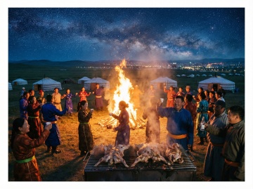沙漠中,古典舞者身着国潮服饰,飘带飞扬,尽显民族优雅与唯美。