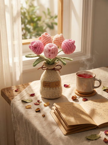 微距俯拍视角,浅灰色亚麻布背景上,右侧叠放着两个棱角分明的牛皮纸礼盒,表面有手工压印的编织纹理,顶部覆盖着象牙白蕾丝纸,精致的镂空花纹呈现出樱花枝蔓图案,自然质感的麻绳在盒身交叉缠绕后打成一个松散优雅的蝴蝶结,末端垂落的绳穗微微卷曲。左侧散落着五朵盛开的淡粉色樱花,其中两朵完全舒展露出淡黄色花蕊,三朵半开的花瓣边缘泛着柔美的珠光,旁边依偎着一个饱满的深粉色花苞和几片带着锯齿边缘的嫩绿色樱叶,一片花瓣轻盈地飘落在礼盒侧面。柔和的自然光从上方偏左45度角斜射而下,在礼盒表面形成渐变的阴影层次,樱花花瓣上凝结着两颗晶莹的露珠,背景角落散落着三两片樱花瓣,整体色调以浅灰、牛皮棕、淡粉和嫩绿为主,营造出简约自然、温馨优雅且略带春日浪漫的氛围,超高清晰度展现出纸张纹理、蕾丝镂空和花瓣脉络的细腻质感。