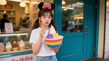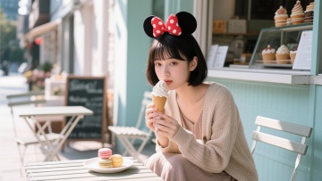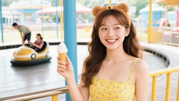 核心设定:差异化脸型五官 + 多样游乐设施 + 甜美元气道具 + 自然抓拍感,适配迪士尼 / 欢乐谷场景,强化发丝飘动、笑容弧度等生活化细节 1. 20 岁,圆脸带婴儿肥,杏眼笑成月牙,小翘鼻鼻尖沾了点冰淇淋奶油,唇珠饱满,黑色高马尾绑着粉色蝴蝶结,头戴星黛露发箍,穿白色碎花连衣裙,坐在旋转木马的白色飞马座椅上,手里举着草莓甜筒,午后阳光洒在裙摆,发丝被风吹得乱飞,佳能 50mm 人像镜头,8K 2. 22 岁,鹅蛋脸,下垂小鹿眼带卧蚕,小巧鼻,豆沙色唇,浅棕色羊毛卷短发,头戴米奇耳朵发箍,穿黄色背带短裤 + 白 T 恤,站在过山车排队区,手里攥着彩虹气球,嘴角上扬露出小虎牙,阳光刺眼眯起眼,皮肤透着健康的粉,胶片颗粒感 3. 19 岁,心形脸,桃花眼笑出梨涡,圆润鼻头,蜜桃色唇,黑色长直发编着双麻花辫,戴迪士尼公主发箍,穿蓝色牛仔短裙 + 帆布鞋,坐在摩天轮轿厢里,手撑着窗户看下方,手里捏着半支巧克力冰淇淋,傍晚暖光映在脸上,氛围感抓拍 4. 23 岁,菱形脸,细长丹凤眼眼尾上挑,高鼻梁,清冷薄唇,银灰色短发狼尾,没戴发箍但耳朵上夹着卡通发卡,穿黑色 oversize 卫衣 + 破洞裤,坐在碰碰车驾驶座上,手抓方向盘,另一只手举着黑色气球,车身碰撞时头发晃到脸颊,阴天柔光,酷飒元气感 5. 21 岁,长脸,圆眼双眼皮褶皱浅,蒜头鼻,饱满唇,棕色锁骨发,头戴玲娜贝儿发箍,穿粉色泡泡袖衬衫 + 百褶裙,站在海盗船的护栏边,船升到最高点时双手张开,手里的棉花糖被风吹变形,笑容灿烂,阳光直射,皮肤有自然阴影 6. 24 岁,方脸下颌线柔和,狐狸眼眼神灵动,鹰钩鼻鼻头圆润,哑光红唇,黑色低马尾碎发贴颈侧,戴小熊发箍,穿红色格子连衣裙,坐在欢乐谷的秋千椅上,双脚离地晃荡,手里攥着一串彩色气球,发丝飘在肩头,午后漫射光,复古胶片风 7. 18 岁,鹅蛋脸,杏仁眼亮晶晶,小翘鼻,樱桃小嘴,浅棕色双马尾,头戴米妮发箍,穿白色短袖 + 浅蓝色牛仔裤,站在甜品站门口,手里捧着超大份彩虹冰淇淋碗,嘴角沾了点紫色果酱,眼睛盯着冰淇淋,表情呆萌,暖黄色灯光,真实生活化抓拍 8. 25 岁,钻石脸,下垂眼带点无辜感,圆润鼻头,水润唇,黑色齐肩短发外翻,戴兔子发箍,穿酒红色缎面衬衫 + 黑色短裤,坐在跳楼机座椅上,上升时双手捂着脸,指缝露出眼睛,手里的气球绳缠在手腕,高空风把头发吹得炸开,刺激感抓拍 9. 22 岁,钝角瓜子脸,细长内双眼,小翘鼻,浅橘色唇,棕色高马尾发丝蓬松,戴迪士尼城堡发箍,穿白色运动背心 + 阔腿裤,站在小火车的车厢门口,手抓栏杆,另一只手举着草莓味冰淇淋,火车开动时裙摆飘起,阳光明媚,活力少女感 10. 20 岁,圆脸,圆眼粗眉毛,宽鼻梁,嘟嘟唇,浅棕色羊毛卷长发,头戴草莓熊发箍,穿黄色连衣裙,坐在旋转咖啡杯里,杯子转动时身体微微倾斜,手里的气球撞在杯壁上,笑出苹果肌,彩色灯光映在脸上,童趣满满
