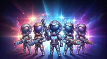 赛博朋克风3D角色,未来感金属质感,霓虹灯映衬下的科技夜景。