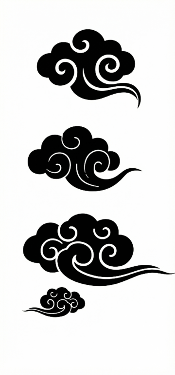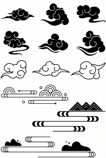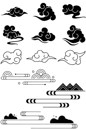 白色背景上,六个完全不同造型的中国传统祥云图案系列素材集合,规整排布。每个祥云图案均采用中国传统祥云的经典曲线、卷涡、流线形态和装饰元素,保持统一的简约线条风格和流畅的线条笔触,线条清晰、边缘锐利。第一个祥云为正红色,造型饱满,呈多层卷曲状;第二个为明黄色,造型灵动,呈飘逸的波浪卷曲状;第三个为天蓝色,造型简洁,呈单层流畅的曲线卷云状;第四个为翠绿色,造型繁复,呈多元素组合的复合祥云状;第五个为紫色,造型优雅,呈带有云纹装饰的长条形祥云状;第六个为橙色,造型独特,呈融合了山峦轮廓的创意祥云状。整体设计风格统一,线条简约流畅,具有浓厚的中国传统文化韵味和现代设计感,适合作为装饰元素或设计素材使用。