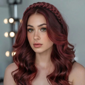 超写实人像摄影,柔和自然光从左上方照射,形成细腻的明暗过渡和柔和阴影,浅米色背景,女性侧脸特写,精致五官,闭着双眼,唇色为自然裸粉色,面部点缀银色小亮片、立体粉色花瓣和白色小花装饰,发丝优雅盘起,耳边垂落粉色花瓣装饰;手部轻托下巴,全新美甲设计采用深邃酒红色渐变底色,指尖镶嵌不规则切割的黑色水钻与银色金属链条装饰,搭配哑光质感黑色蝴蝶结立体甲片;整体妆造变换为冷艳暗黑系风格,眼妆以深棕与墨黑色眼影晕染出深邃烟熏效果,眼尾点缀细小黑色羽毛,唇妆改为哑光正红色,面部保留少量银色亮片但增加黑色小珍珠点缀,营造神秘优雅的暗黑氛围,画面保持高清细腻的皮肤质感和柔和的光影层次,色彩对比增强,突出冷艳与精致的视觉冲击。