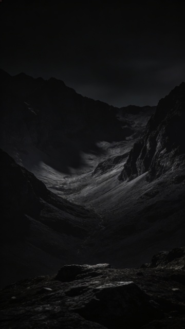 帮我生成图片:比例 「9:16」图片风格为 「风景」 我需要你给我生成10张深黑色的风景壁纸 画面中心严格在画面底部的1/4位,不要有主体元素 每张图的相似度不超过30%