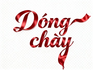 “Dòng”字的丝绸末端向上延展,沿着文字方向自然横向飘动;“chảy”字的丝绸末端则向下垂落,如水般流淌。