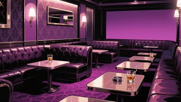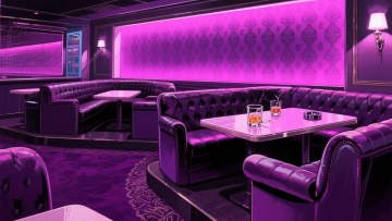 二次元日漫,酒吧,,氛围魅惑、深紫色,不要人物,细节丰富,16:9,生成二张