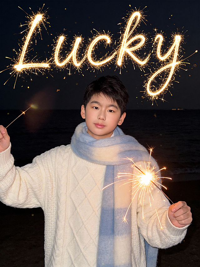 梦幻烟花映衬下,暖色系毛衣与格纹围巾交织温馨浪漫,毛发生长风与面料质感细腻呈现,光影流动间尽显节日实景氛围。详情