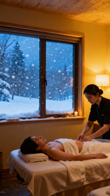 轻拟物风融合油画质感,柔和光影勾勒温馨按摩场景,实景感十足,传递舒适疗愈氛围。