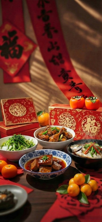 中式古典风,国潮水墨肌理,中秋佳节,精致月饼与传统食材,尽显东方韵味。