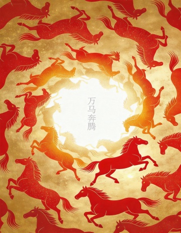 鎏金浮雕风骏马,工笔描边勾勒祥云瑞气,国潮复古中透出奢华喜庆,福字点缀,尽显中式年味。