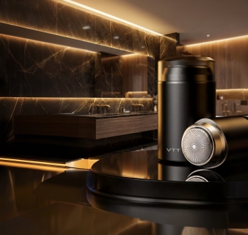 极简主义构图,全景视角下的未来生物实验室,纯净的白色与冰川蓝构成的无菌空间,墙面采用无缝纳米陶瓷板拼接,地面是反光率达95%的超白玻璃材质,顶部悬浮着呈几何阵列排列的环形LED光源,光线均匀地洒落在所有表面。左侧是模块化悬挂式试剂架,透明亚克力容器中装着梯度蓝色的生物试剂,下方嵌入式实验台配备隐藏式智能控制面板。中央区域放置着一台六边形结构的量子分析仪器,金属外壳呈现细腻的哑光钛白色。右侧墙面上的生物安全柜采用隐形门设计,与墙面融为一体。整个空间无任何视觉噪音,连空气都仿佛凝固在绝对静止中,只有试剂瓶上的分子结构标签在微光下隐约可见,完美平衡了科技冷感与空间美学,为内容展示提供极致洁净的背景画布。
