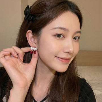 超写实人像摄影,柔和自然光从左上方照射,形成细腻的明暗过渡和柔和阴影,浅米色背景,女性侧脸特写,精致五官,闭着双眼,唇色为自然裸粉色,面部点缀银色小亮片、立体粉色花瓣和白色小花装饰,发丝优雅盘起,耳边垂落粉色花瓣装饰;手部轻托下巴,全新美甲设计采用深邃酒红色渐变底色,指尖镶嵌不规则切割的黑色水钻与银色金属链条装饰,搭配哑光质感黑色蝴蝶结立体甲片;整体妆造变换为冷艳暗黑系风格,眼妆以深棕与墨黑色眼影晕染出深邃烟熏效果,眼尾点缀细小黑色羽毛,唇妆改为哑光正红色,面部保留少量银色亮片但增加黑色小珍珠点缀,营造神秘优雅的暗黑氛围,画面保持高清细腻的皮肤质感和柔和的光影层次,色彩对比增强,突出冷艳与精致的视觉冲击。