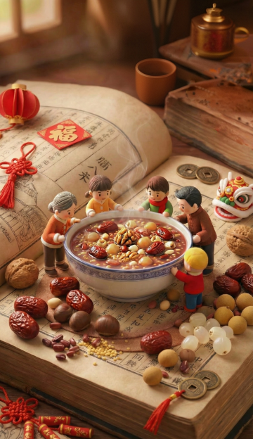 冬至夜雪落庭院,水墨笔触勾勒“冬至”大字,红灯笼映暖光,家人围坐包饺子,剪纸窗花透温情,国潮风韵中尽显中式复古与喜庆温馨。
