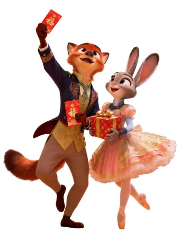 3D动漫风雪夜自拍,拟人狐狸与兔警官温馨互动,霓虹灯与雪花点缀梦幻圣诞氛围,粒子飘雪增添浪漫可爱感。