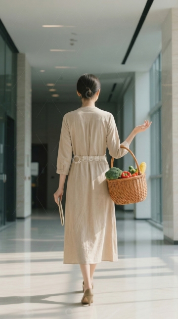 柔和光影下的都市街拍,黄裙女子手提购物袋,优雅行走。杂志风构图,面料质感细腻,清新时尚,尽显春日浪漫。
