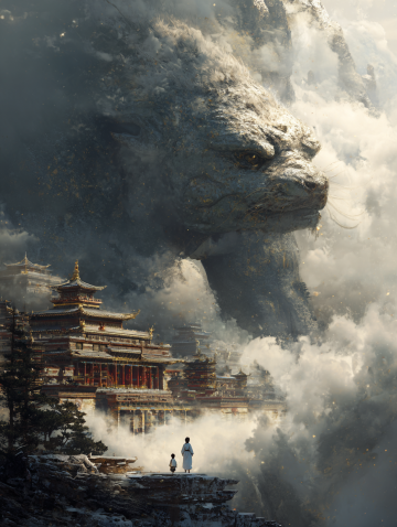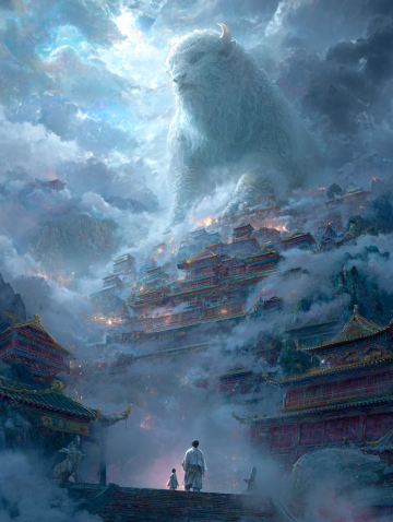梦幻古典中式插画,仙人御剑飞行,云海缭绕,水墨风格渲染虚拟现实。