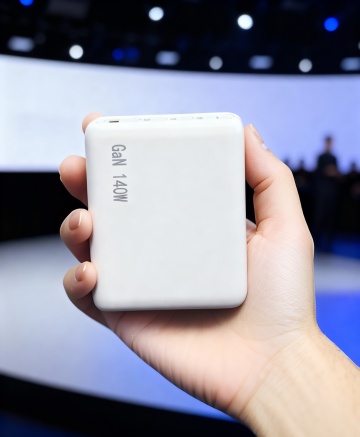 一个简约现代风格的白色充电宝,采用光滑细腻的哑光材质,边缘圆润处理,正面有品牌logo和四个电量指示灯,底部配备两个USB-A接口和一个USB-C接口,轻盈悬浮在流动感十足的白色丝绸背景上,背景采用柔和的浅灰色渐变,整体画面干净通透,光线从左上方柔和照射,在充电宝右侧和丝绸褶皱处形成自然的高光与细腻阴影,营造出优雅、科技感与质感并存的氛围,构图以充电宝为视觉中心,丝绸背景呈波浪状环绕,凸显产品的简洁设计与高端品质。