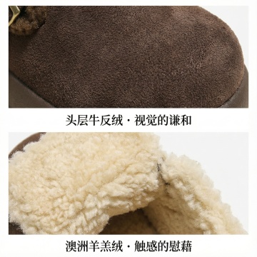 [布局] - 产品:鞋子分解式展示(鞋底、鞋床、鞋面分离展示) - 排版:三分构图法展示三个核心卖点 1. 鞋床 - 自然材质特写 2. 毛绒内里 - 保暖细节 3. 防滑底纹 - 底部特写 - 设计:纯白背景,产品图+简约图标+关键词