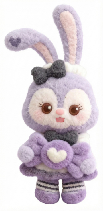 梦幻软3D风毛绒兔,彩虹毛发随光流动,雪中静坐,暖阳洒落,营造冬日温馨童话氛围。