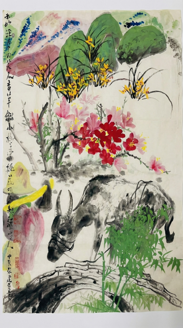 水墨晕染与水彩交融,朦胧抽象中透出中式意境,简约笔触营造文艺氛围,如山水相望,静谧悠远。