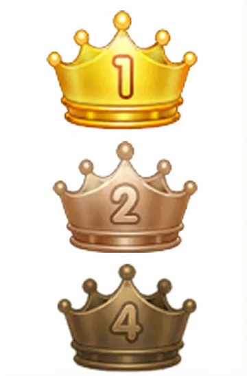 4个不同样式、不同配色的王冠,每个王冠都具有精致的3D渲染效果,表面光滑有光泽,带有金色的金属质感和镶嵌的闪亮钻石细节,王冠整体造型华丽典雅,排列整齐地置于纯白色背景上,光线明亮柔和,阴影清晰自然,整体画面干净整洁,突出王冠的精致设计和高贵质感。