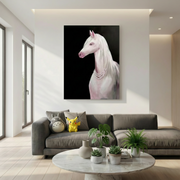 工笔与岩彩交融,鎏金勾勒骏马华纹,融合中式民族元素,喜庆祥瑞,尽显复古雅致。