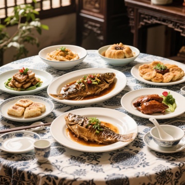 这是一套青花瓷餐具,第 五张图是6.25英寸盘子,第四张是8英寸盘子,第三张图是30cm的鱼盘,第二张图是7英寸斗笠碗、第一张图是8英寸斗笠碗,根据提供的参考图,生成8张电商产品主图。要求图片必须包含每个餐具的简要卖点文案。8 张图中不仅有单个产品的介绍,还有把他们结合在一起的场景,一定要将餐具与生活场景进行结合,主图突出这个风格餐具的文化特点和底蕴。图片比例为1:1。